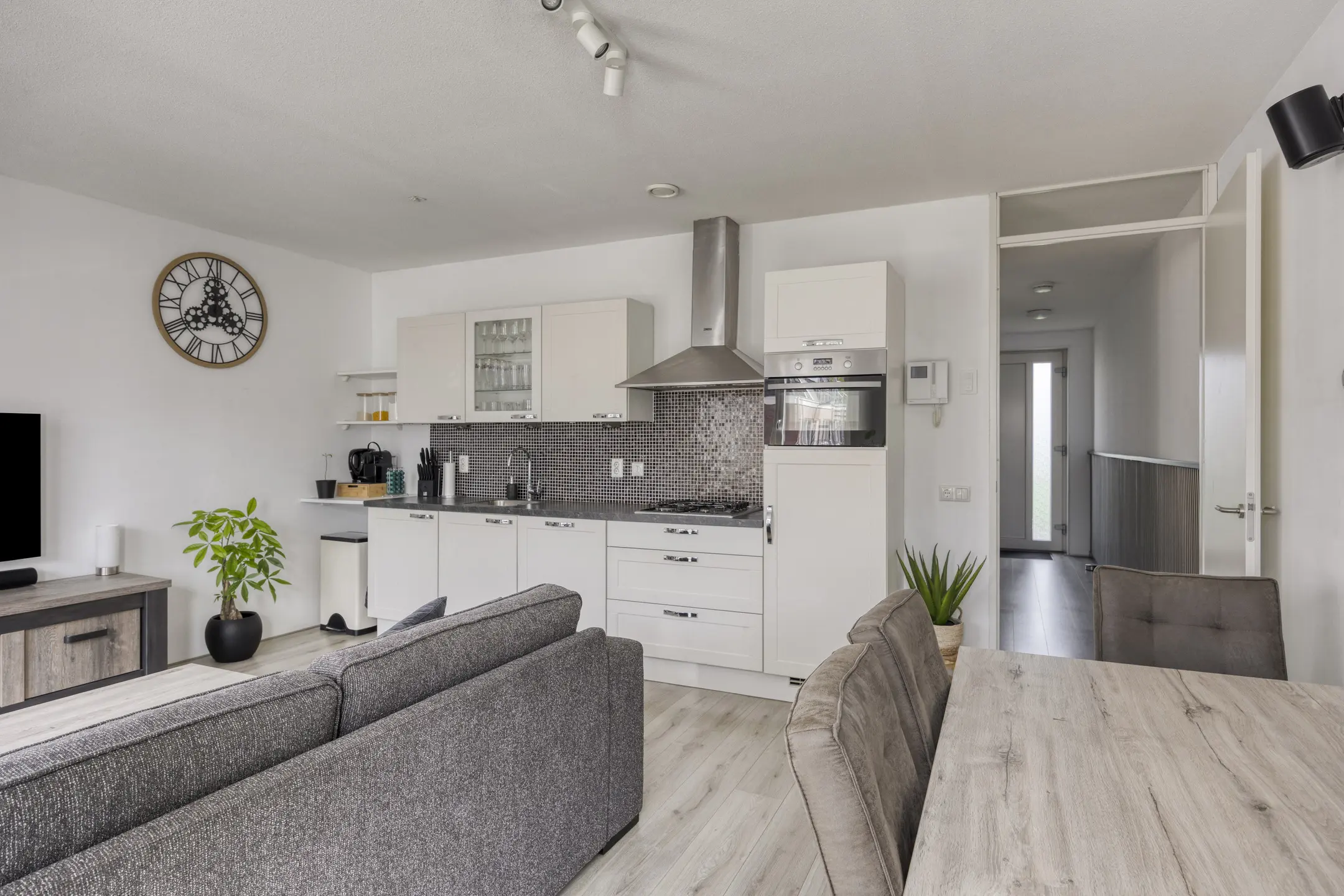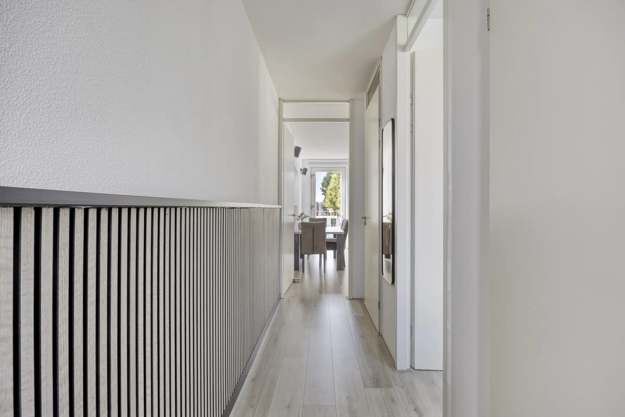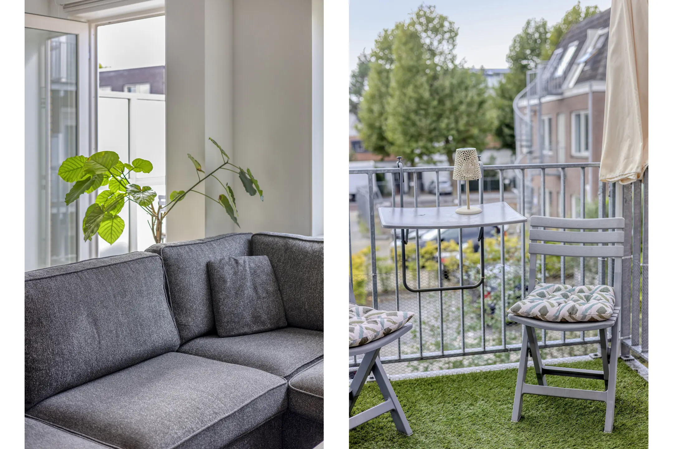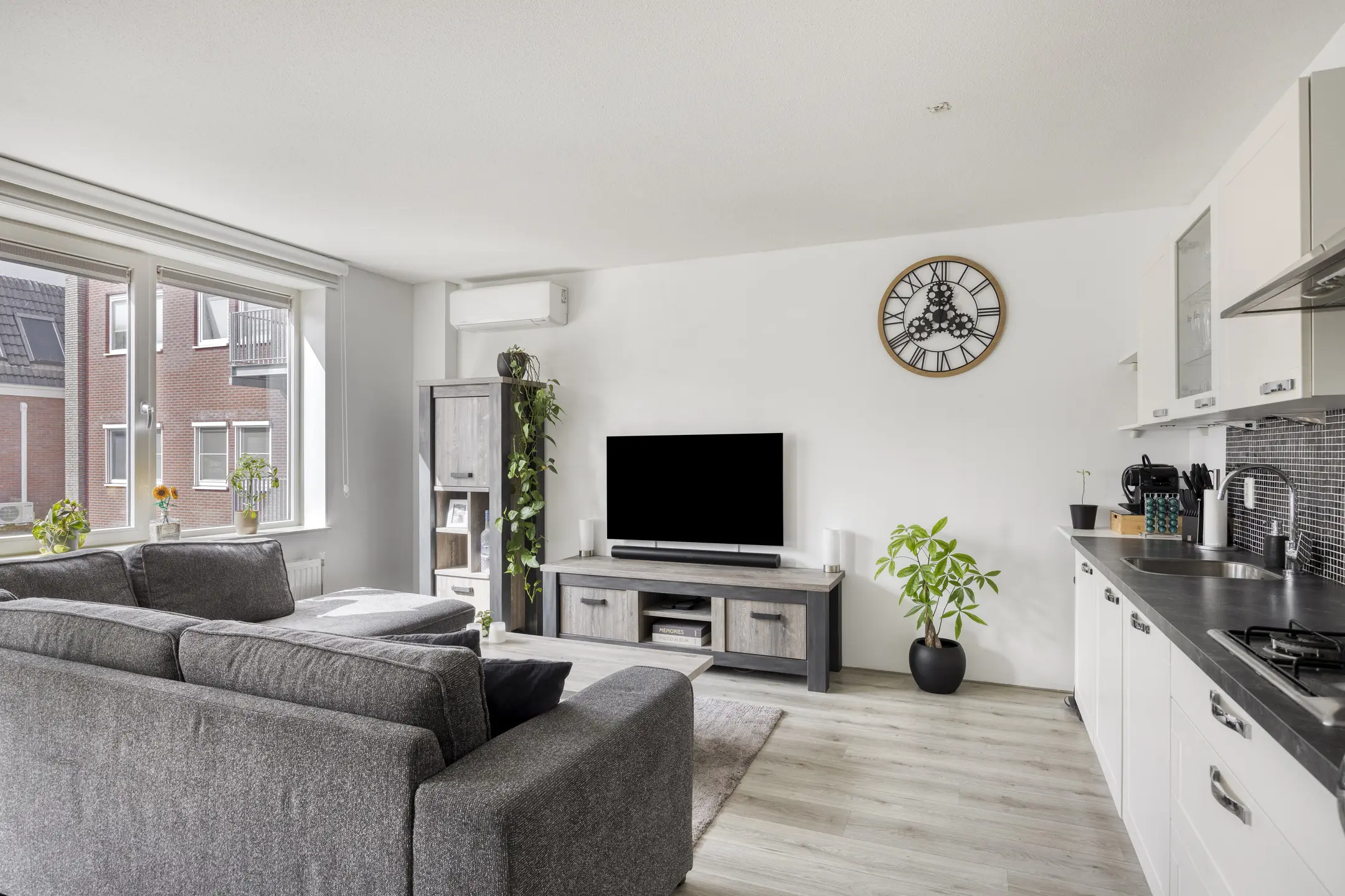 Je stapt het appartement binnen in een lichte hal die toegang geeft tot alle vertrekken. Zodra je de woonkamer binnenloopt, valt direct de fijne lichtinval op. De grote ramen zorgen voor een prettige sfeer en via de openslaande deur bereik je het balkon op het zuidwesten – een heerlijke plek om van de zon te genieten.