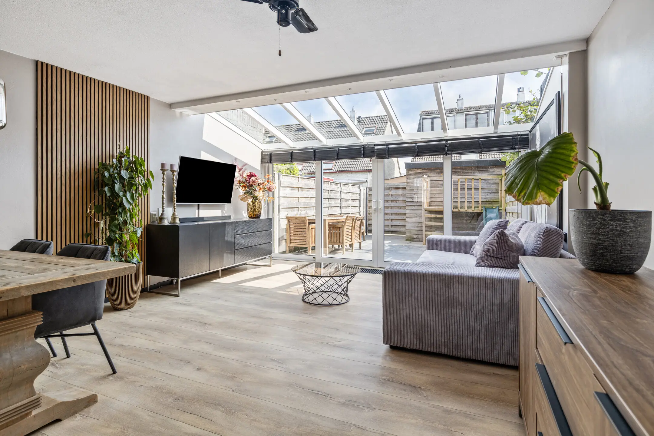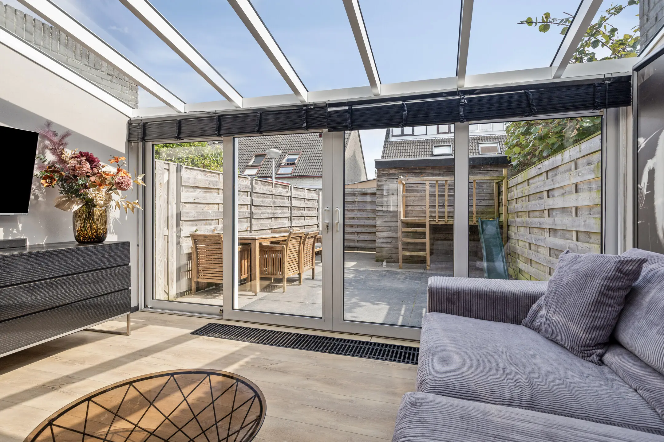 Uitgebouwde woonkamer met serre