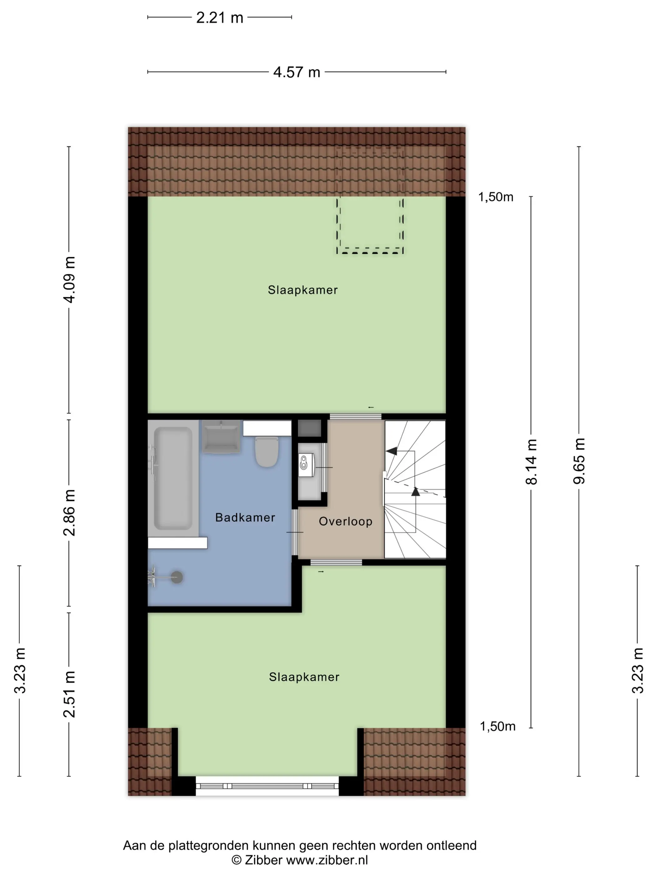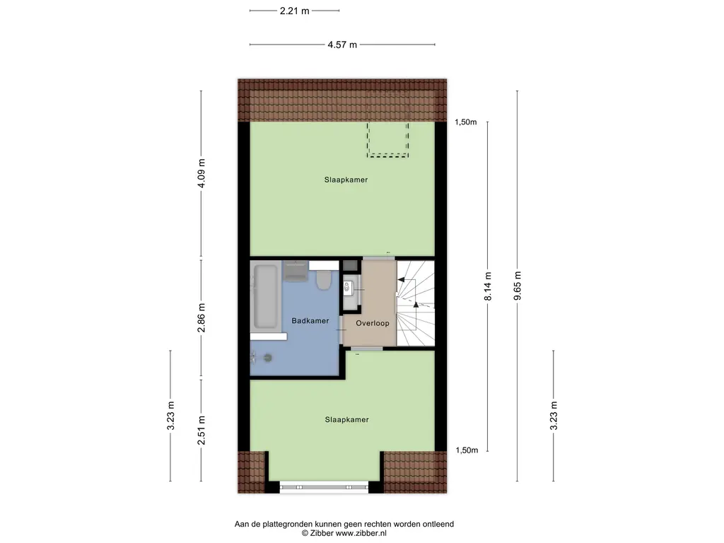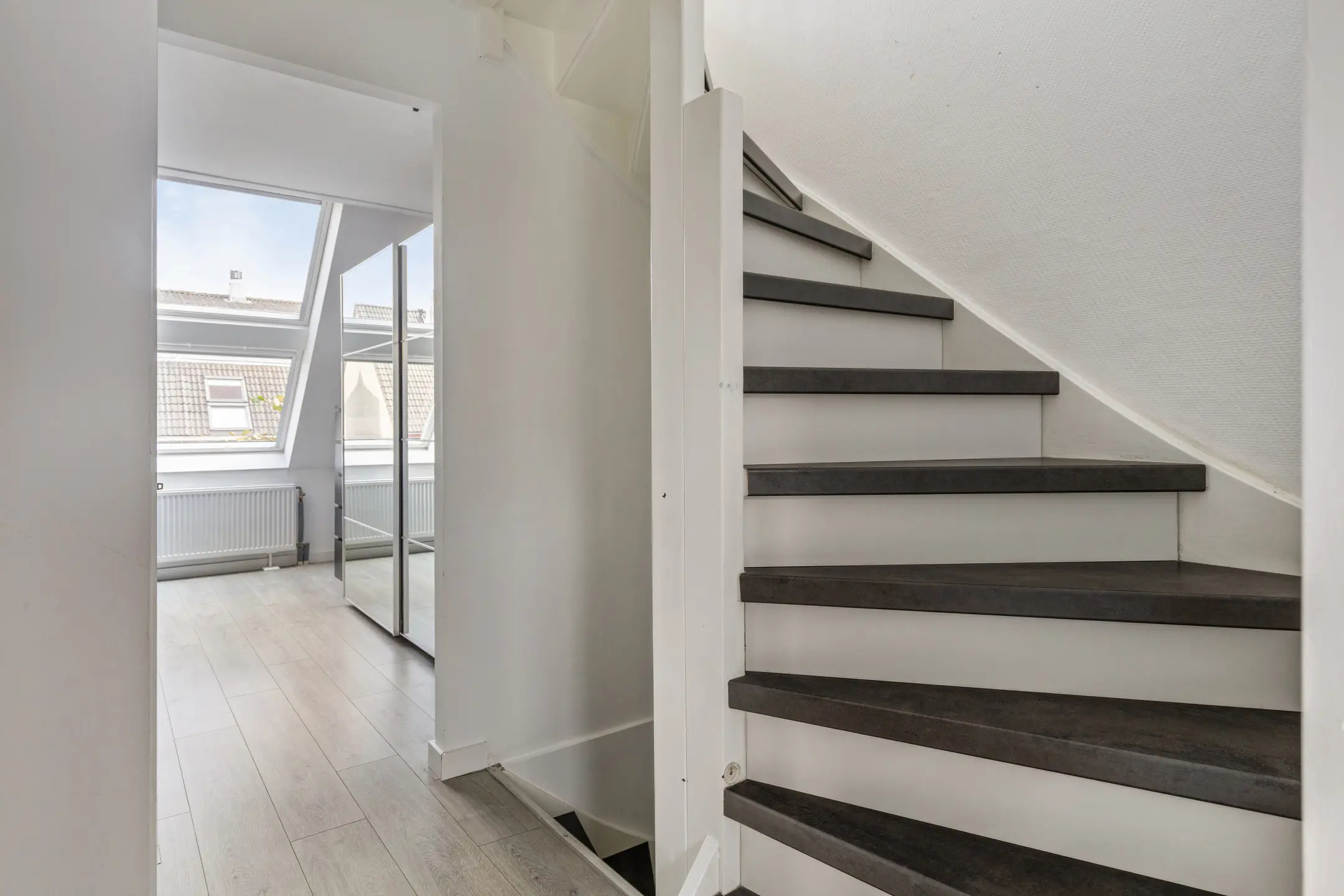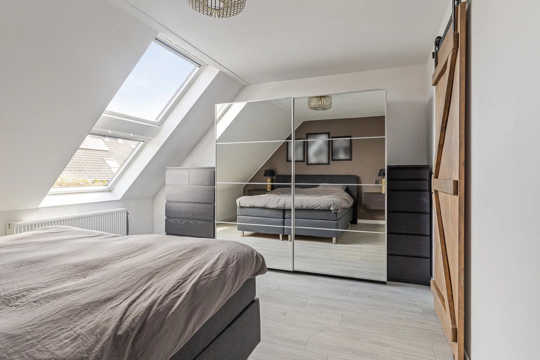De overloop geeft toegang tot twee ruime slaapkamers en de moderne badkamer. Beide slaapkamers zijn licht en ruimtelijk dankzij de grote ramen. De badkamer is stijlvol uitgevoerd met een ligbad, inloopdouche, wastafelmeubel en een tweede toilet.