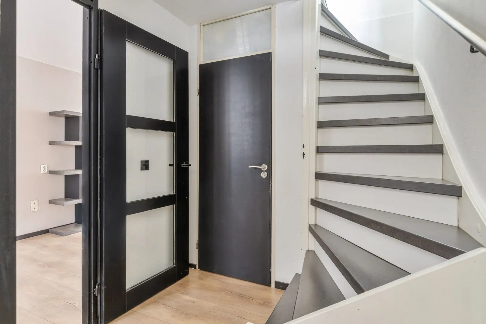 Bij binnenkomst kom je in de hal met garderobe, meterkast, modern toilet en trapopgang naar de eerste verdieping. Aan de voorzijde bevindt zich de keuken, voorzien van diverse inbouwapparatuur zoals kookplaat, oven, afzuigkap, koel-vriescombinatie en vaatwasser. Dankzij de praktische indeling is er veel werk- en kastruimte.